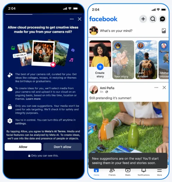Facebook is emphasizing that the feature is entirely optional and will not scan or upload personal images without explicit user permission. The company also highlights how the tool polishes images and creates collages, removing the need for design skills. The feature is currently available in the U.S. and Canada, with expansion to additional regions planned.
