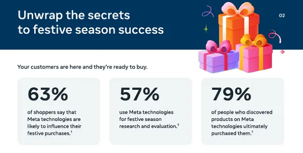 Reels content has emerged as the biggest driver of engagement on both Facebook and Instagram, making it a critical focus for holiday campaigns. Meta provides creation tips and inspiration guidelines to help brands leverage this high-performing format. The guide also includes engagement statistics and insights specific to the end-of-year period, helping marketers understand peak audience behavior.