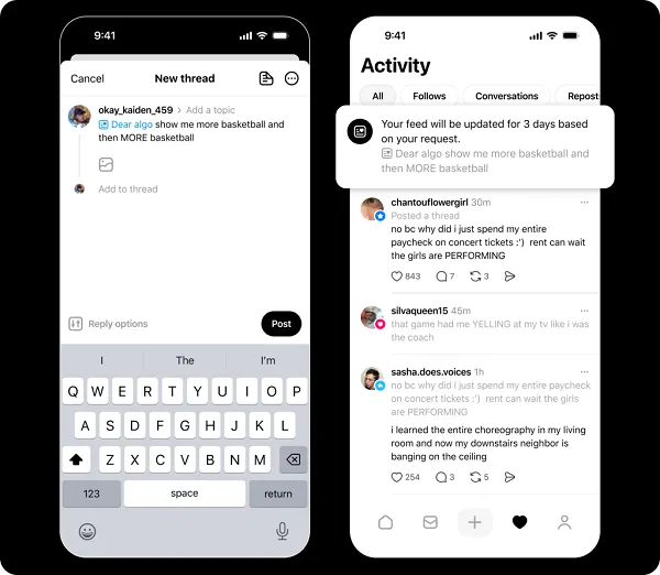 Dear Algo allows users to take control of their Threads feed by crafting a public post beginning with “Dear Algo,” followed by their content preferences. For example, users can request to see more posts about live sports events or fewer posts about television shows they haven’t watched yet. Once shared, the Threads algorithm adjusts the feed based on that specific request for exactly three days, giving users a limited window to test their preferred content distribution.
