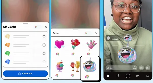 Jewels are an in-app currency that viewers purchase to buy digital stickers, which can then be sent during a live stream. The stickers allow fans to stand out in the chat and get noticed by their favorite creators, while a portion of every sticker purchase goes directly back to the streamer.